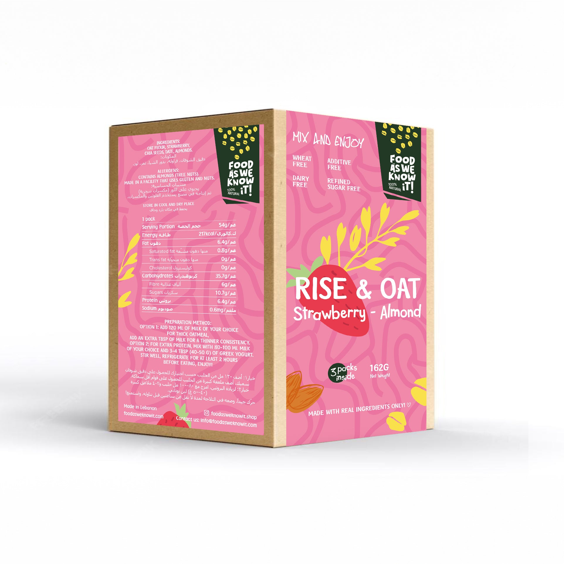 Creamy oat base blended with real dried strawberries, chia seeds, organic almonds and natural date sweetness. It is high in fiber, rich in omega 3 and antioxidants, and bursting with natural flavor.